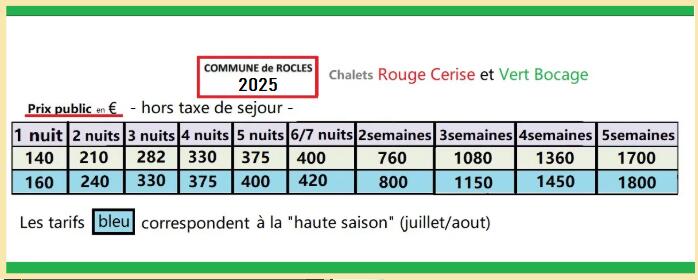Tarifs à la nuit / week-end ou semaine, tarifs dégressifs à la semaine nous contacter.